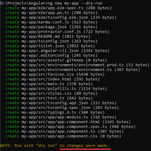 使用这个参数呢, 不会真的生成项目, 而是会打印出来如果创建该项目的话哪些文件将会生成.