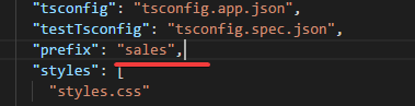 如果想更改默认前缀的话, 就可以修改angular-cli.json文件里面的prefix属性值了, 如果改成sales, 那么以后生成的components和directives的前缀就是sales. 但是对已经生成的components/directives就不起作用了.