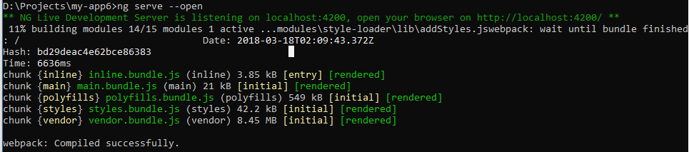 以上就是奋斗马里奥最近收集整理的关于使用Angular CLI生成 Angular 5项目教程详解的全部内容,更多相关使用Angular内容请搜索靠谱客的其他文章。