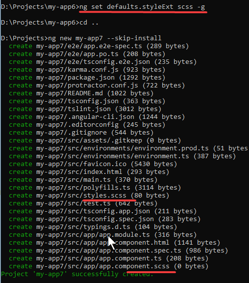 可以看到生成的是styles.scss, app.component.scss文件, angular cli不仅会生成scss文件, 而且也会编译它们.