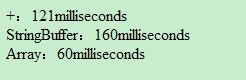 机器配置较高时:“+”字符串拼接方式消耗时间可能会与Array方式持平。甚者会更短.