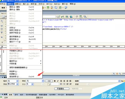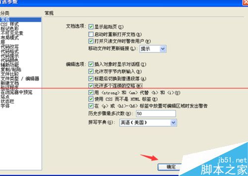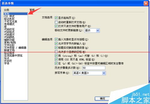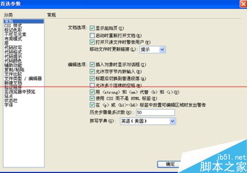 4、接着,我们就进入到Dreamweaver编辑首选参数选项面板。