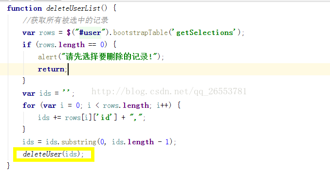 以上所述是小编给大家介绍的Bootstrap Table 删除和批量删除,希望对大家有所帮助,如果大家有任何疑问请给我留言,小编会及时回复大家的。在此也非常感谢大家对脚本之家网站的支持!