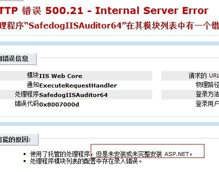 处理程序“SafedogIISAuditor64”在其模块列表中有一个错误模块“IsapiModule”