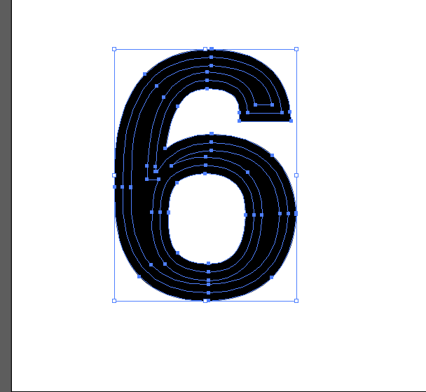 2、然后给6创建轮廓Ctrl+shift+O或在窗口里找文字,创建轮廓,接下来选中6把文字的描边给他扩展了,步骤是对象,扩展,这两步做完后如下图: