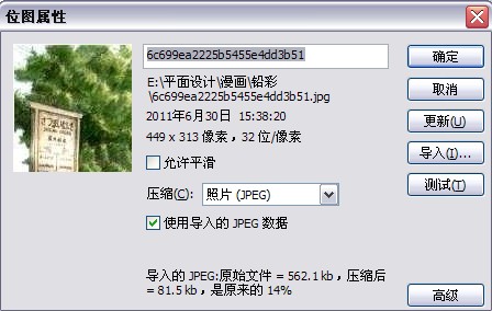 5、点击修改——文档,弹出如下对话框 ,我们把尺寸改成刚才位图的尺寸。