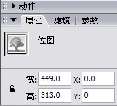 6、在下面的属性面板中,可以看到坐标位置,把它调成x:0,y:0.这样位图就和文档的大小完全一样了。