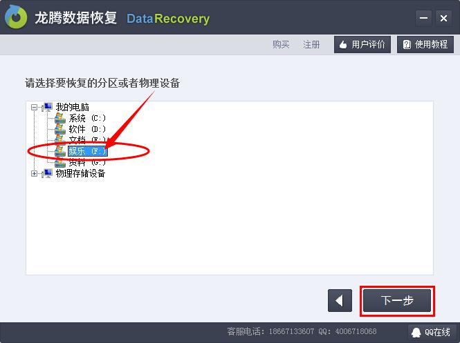 第3步、选择丢失文件所在的F盘,然后点击下一步。