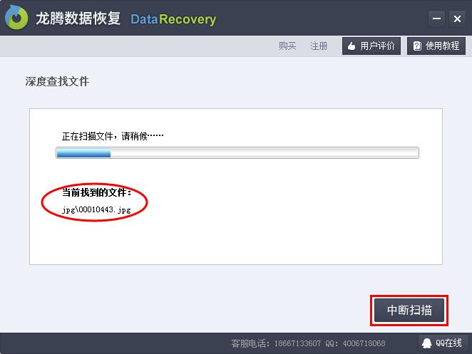 第4步、进入扫描阶段,等待软件扫描完成。如果用户发现已经扫描到丢失的文件,可以点击“中断扫描”按钮结束扫描。