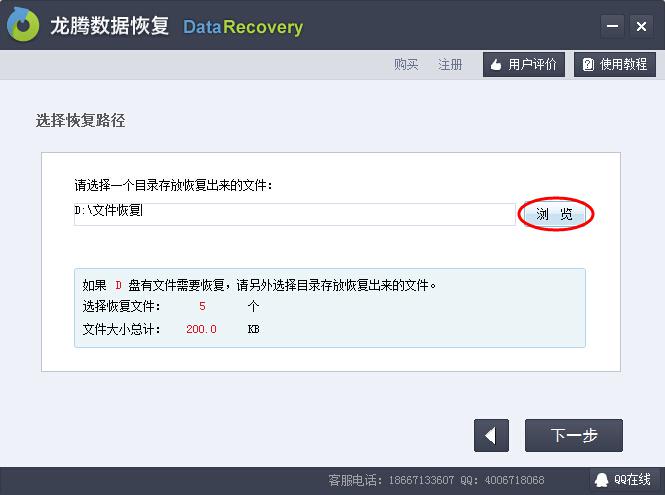 第6步、选择一个盘存放需要恢复出来的文件,然后单击下一步,切记不能设置为F盘。然后等待恢复完成即可。