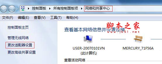 1、在win7系统下找到电脑桌面上“网络”图标,右击选择“属性”(或右击电脑右下角任务栏中的“网络连接”状态图标,选择“打开网络和共享中心”),进入“网络和共享中心”窗口。点击左侧栏里“更改适配器设置”菜单。进入“网络连接”窗口。