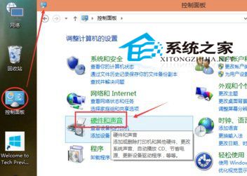 第一步、双击桌面控制面板图标,打开控制面板,在其里找到并点击选择“硬件和声音”。