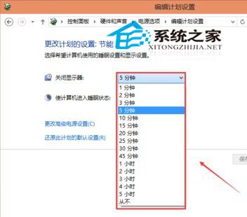 第四步、在编辑计划设置界面,点击关闭显示器后面的向下箭头,在里面点击选择自己认为适合自己的时间段。