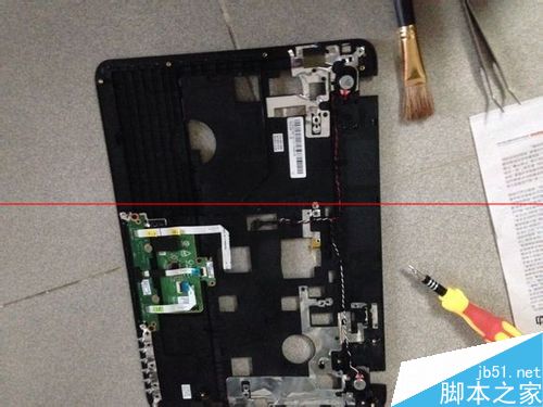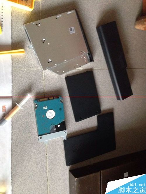 1、最开始也是最简单的第一步:把背面能拆的螺丝全拆了,一个不留,螺丝尺寸一样,无所谓摆放,硬盘没有螺丝固定,侧面取出,网卡取下螺丝轻松拿开,硬盘边上一个白色供电头摘下,光驱旁边一个螺丝取下,拿出光驱,下面还有一个螺丝,取下背面工作结束。。