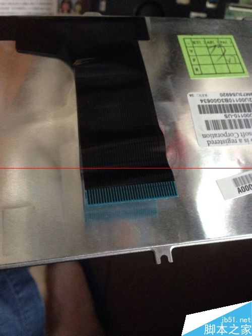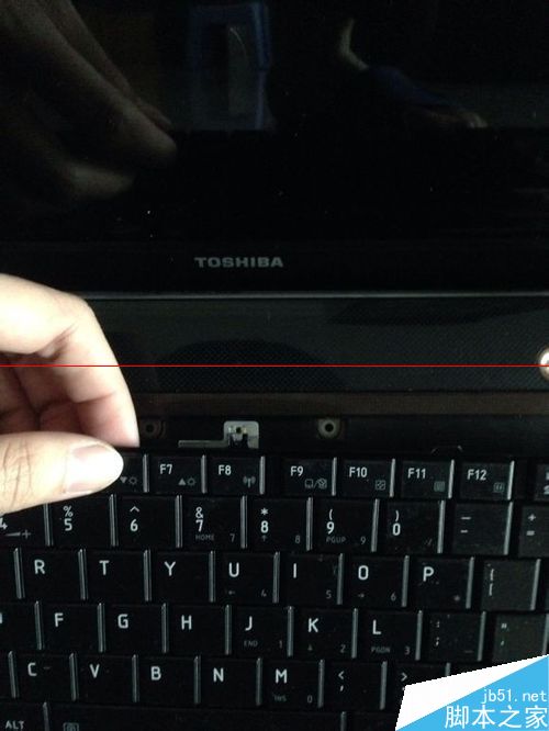 2、返回正面拆键盘,中间有装饰条轻轻从中间挑起取走。看到三个固定键盘的螺丝,取下后撬键盘,用力即可,但小心别扯烂排线。排线挑起黑色部分就可以取走键盘。