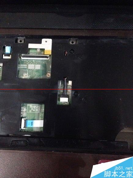 3、看到键盘下面,再拉开两条排线,方法类似,还有很多个螺丝,全部取走。注意:拆排线把黑色部分平行的拔出来就行,慢一点拔, 不要拔歪了。