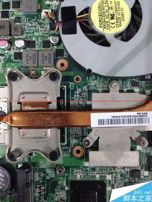 5、风扇线拆了,严格按照数字取下所有螺丝,显卡位置有硅胶垫,老化直接脱落了,i3处理器的硅脂也全部硬化了,轻轻 挂走。涂新硅脂,显卡位置垫一块铜片,同样涂硅脂,风扇小螺丝拆了,打开内部,认真清洗,加机油,全部装回。