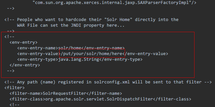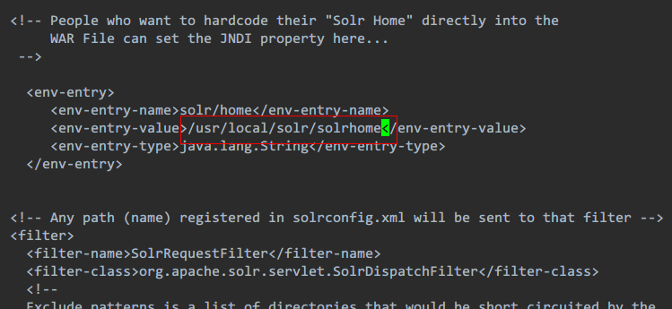 然后到最下方,将这一段注释掉,不然会报403错误,完成后保存退出(solr4部署不用注释这个)