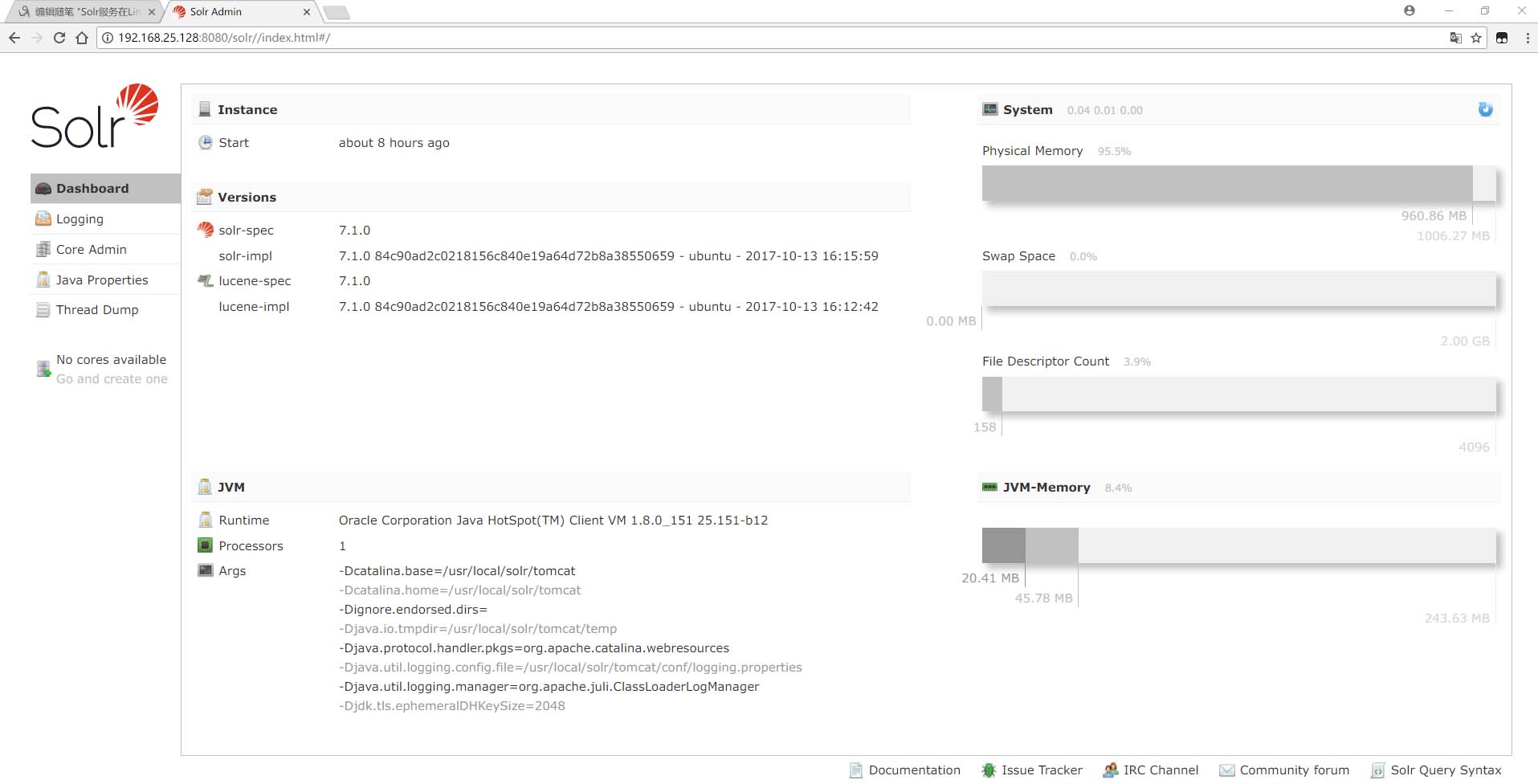 注意:solr6.0以上,官方建议使用jdk8,tomcat8。和solr4部署流程有略微差别