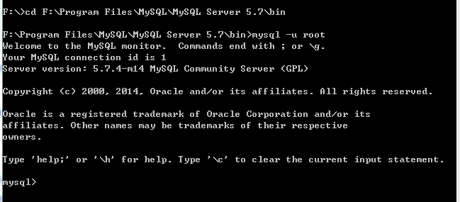 四、原窗口不关闭,新打开一个,转入mysql的bin目录下