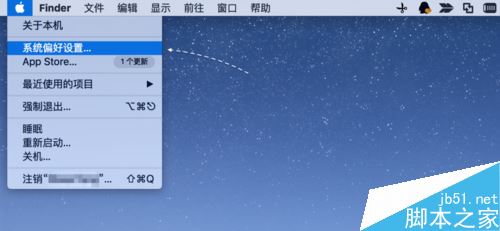 接下来请点击桌面上方的苹果菜单栏中的【系统编好设置】选项,如图所示