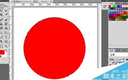 之后,新建一层,点击圆形选框工具,按键盘的ALT+SHIFT用鼠标画一个正圆形,填充红色。