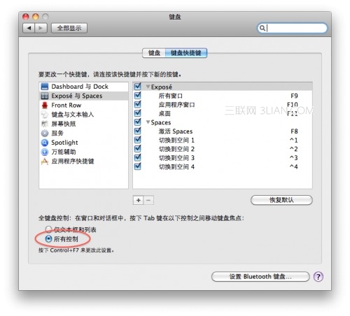 如果不用鼠标或者触摸板你按回车只能关机,可是手又很懒怎么办。 Step1:系统偏好设置-键盘中选中“所有控制”