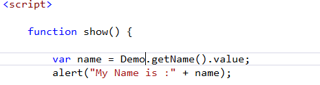 3)这也是一个博主告诉我的细节啊!他这么说的:调用的时候,不一定要用声明的那个类名喔。可以使用 [AjaxNamespace("DEMO")] 这个标签,对这个类进行重命名。博主试了一下,确实是可以的。把这个标签放在被调用的类前面,记得是类前面哦。就可以了。