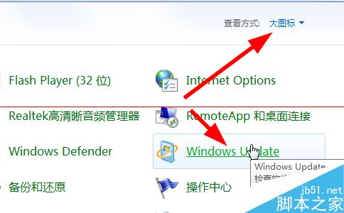 2、在控制面板中点击Windows Update(windows更新),(注意查看方式为大图标或者小图标)