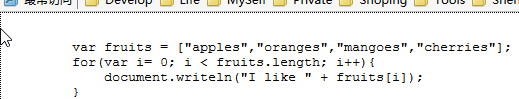 var fruits = ["apples","oranges","mangoes","cherries"];