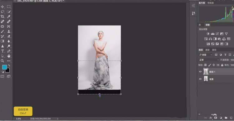 4、然后先用【选区工具】选区下方的区域,然后【CTRL+T】将下方的图片拉长。填补黑色区域。