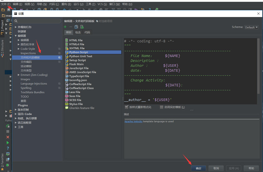 以上就是香蕉水蜜桃最近收集整理的关于PyChar学习教程之自定义文件与代码模板详解的全部内容,更多相关PyChar学习教程之自定义文件与代码模板详解内容请搜索靠谱客的其他文章。