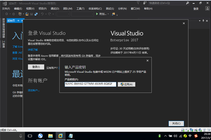 Visual Studio 2017(VS2017) 企业版Enterprise 注册码:NJVYC-BMHX2-G77MM-4XJMR-6Q8QF