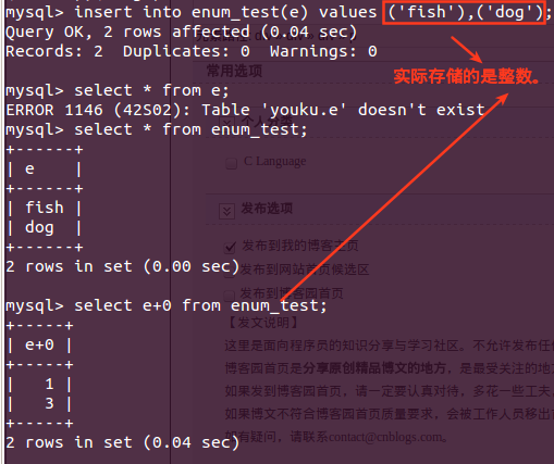 (3)MySQL在内部把每个值都保存为整数,以表示值在列表中的位置。