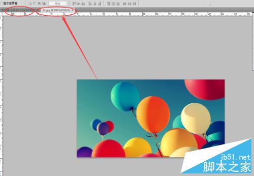 3、这时你仔细看就发现图片并没有插入刚开始我们建立的那个图层里,如图中箭头所指,它们分别位于两个对话框里,所以只是在PS中打开了图片而已,所以我们还要进行后续操作,才能将图片插入前面的对话框里;