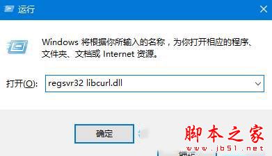 3、复制进去后,按下“Win+r”组合键打开运行,输入:regsvr32 libcurl.dll 点击确定;