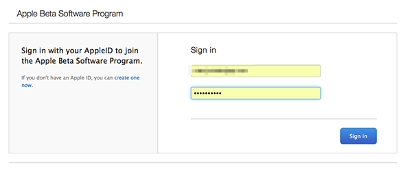 1、首先前往Apple Public Beta下载页面(网址请点击),输入已经加入Apple Beta软件计划的Apple ID,点击“sign in”登录。