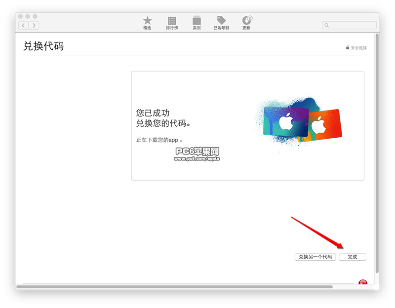 6、登录Apple ID 成功后,自动跳入兑换代码界面,这时候系统会自动输入刚刚显示的蓝色字体的兑换码,如果没有的话,我们可以自己手动输入。