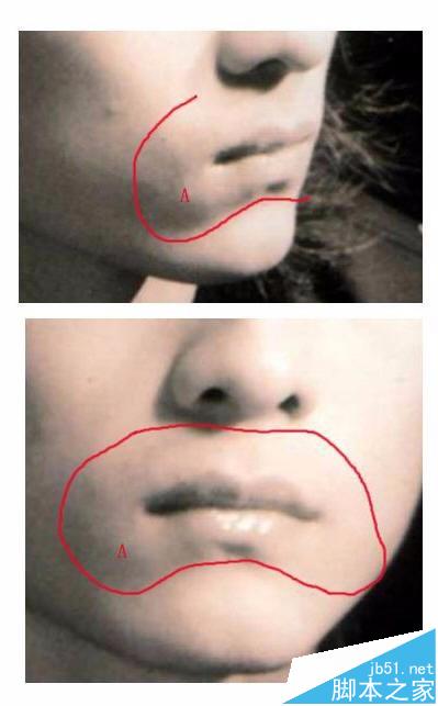 1、可以看到口伦是突出鼓起的,要做好口伦必须要和其周围的关系做对。