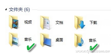 例如,一位同事反映,他在更改了系统用户文件夹的“图片”文件位置之后,不知何故,“图片”文件夹却变成了“音乐”文件夹,虽然图标有所不同,但文件名却相同,而且没有办法改回来了(图8)。那么,同一个文件夹中为何出现两个同名的“音乐”文件夹且无法更改?这个问题如何解决?