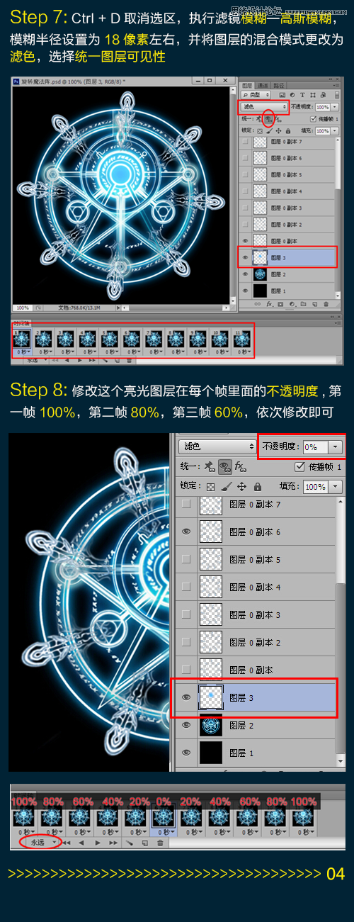 以上就是昏睡海燕最近收集整理的关于PS CS6制作超酷的魔法旋转阵GIF动态图的全部内容,更多相关PS内容请搜索靠谱客的其他文章。