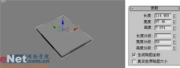 1、启动启动3dmax9.0,单击“创建”命令面板,点击“几何体”按钮,在下拉列表框中选择“标准基本体”项。点击“长方体”按钮在视图中绘制一长方体box01,并适当调整其参数,如图1所示。