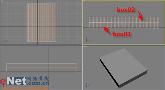 2、按住shift,拖动box01,复制一长方体box02,由此box01、box02共同作为一本书模型,box01是打开书的底部部分,box02是打开书的上面部分。如图2所示。