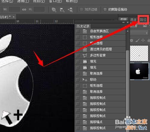 photoshop钢笔工具调节杆由双向切换为单项调节 我通过在苹果缺口路径上绘制路径进行演示 之后还会通过将路径转化为选区演示修补工具选项为源和目标的差异 第五步骤是关键操作 我把操作中会出现的提示标志也做了出来 请留意