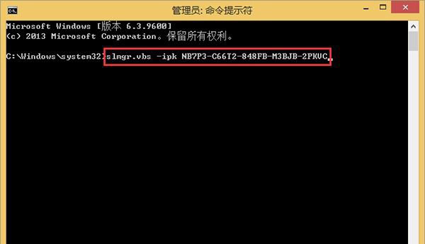 2、打开命令提示符后,输入“slmgr.vbs -ipk NB7P3-C66T2-848FB-M3BJB-2PKVC”,按下回车。