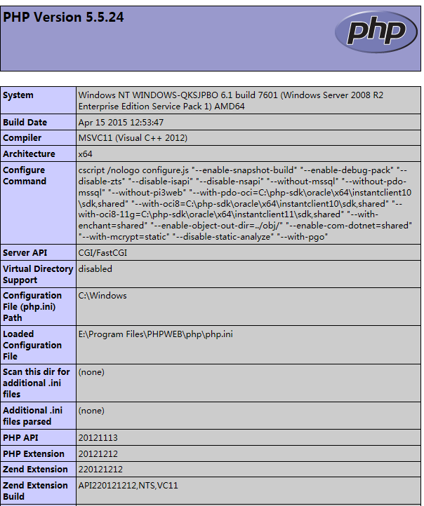 php套件适用于 64位的系统(win2008 r2 /win2012)