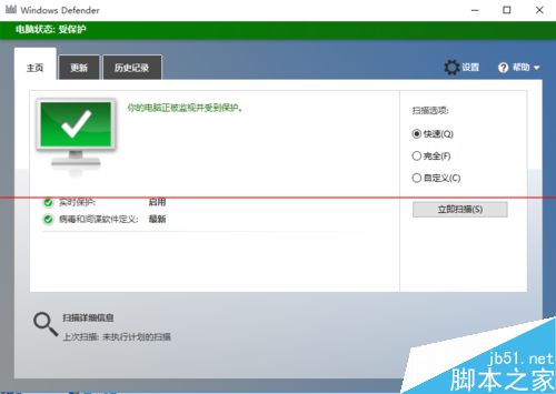 7、win10自带的Windows Defender可以保护pc、平板、手机等设备的安全,我用过的盗版win8.1也有这个只不过是摆设还好我们大天朝有各种卫士武功高强要是它们不掐就更好了,低配的电脑就不用卫士们来捣乱了。
