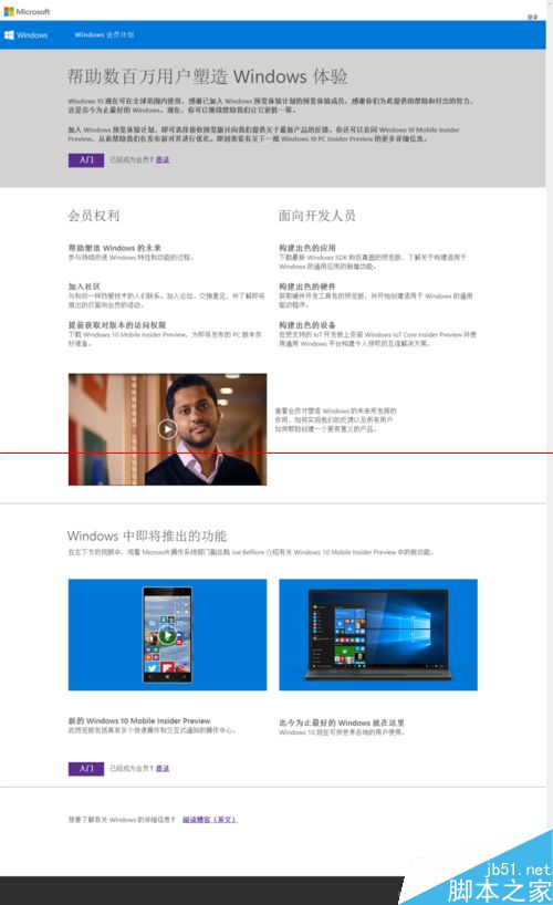 3、首先进入https://insider.windows.com/windows 会员计划点击入门