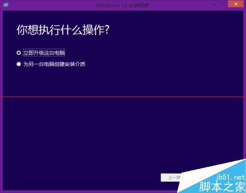 8、打开MediaCreationTool有两个选项,第一个是直接升级可以保留电脑的软件与文件但是密钥不可升级的不能用这个会失败,所以我们选第二个“为另一台电脑创建安装介质。