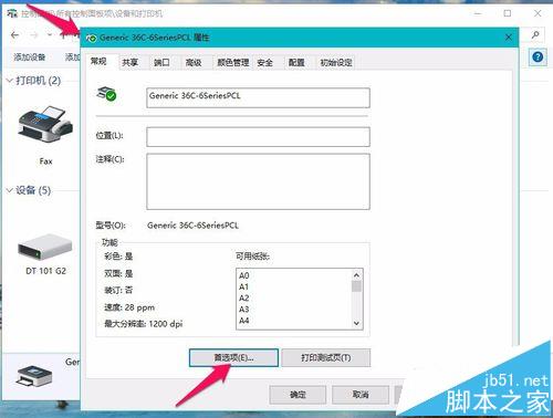 7、还是进入设备和打印机,再你的打印中右键。这次选择打印机属性——常规——首选项。如图